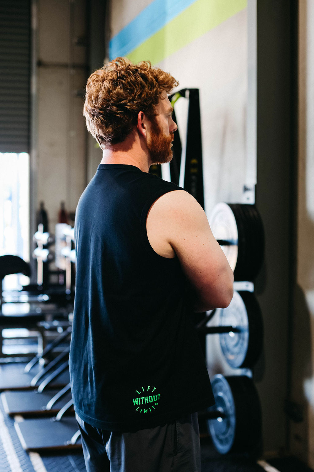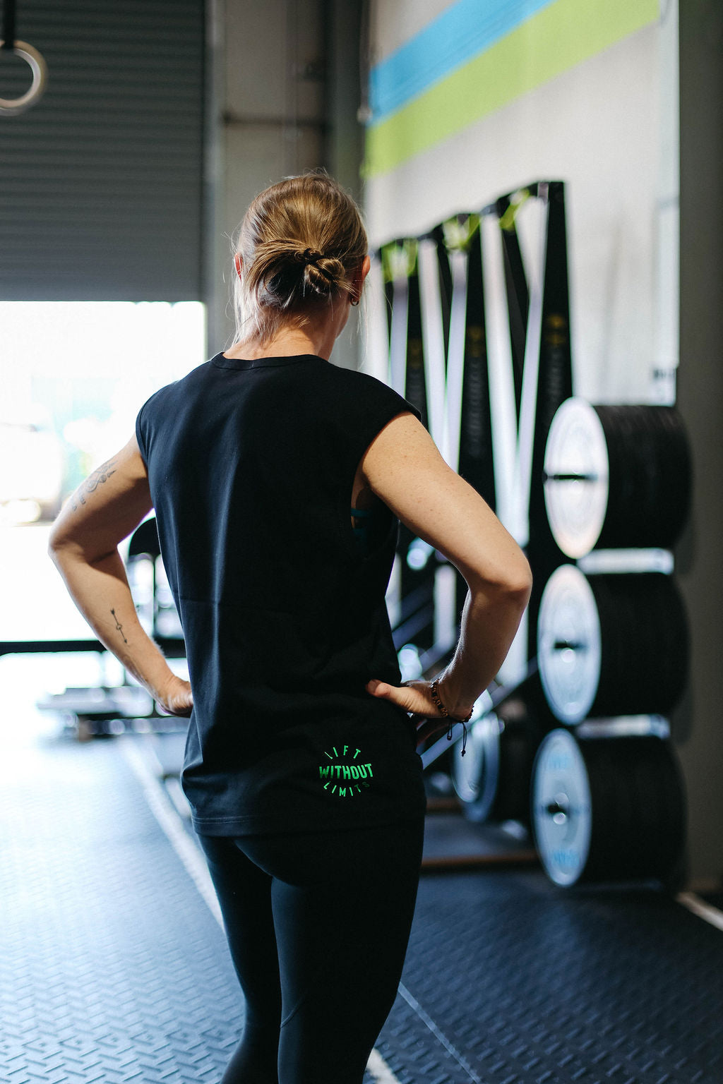 This sleeveless essential features a relaxed, athletic cut that moves with you, breathable cotton for all-day comfort, and our signature rainbow barbell design front and centre — because visibility is strength.